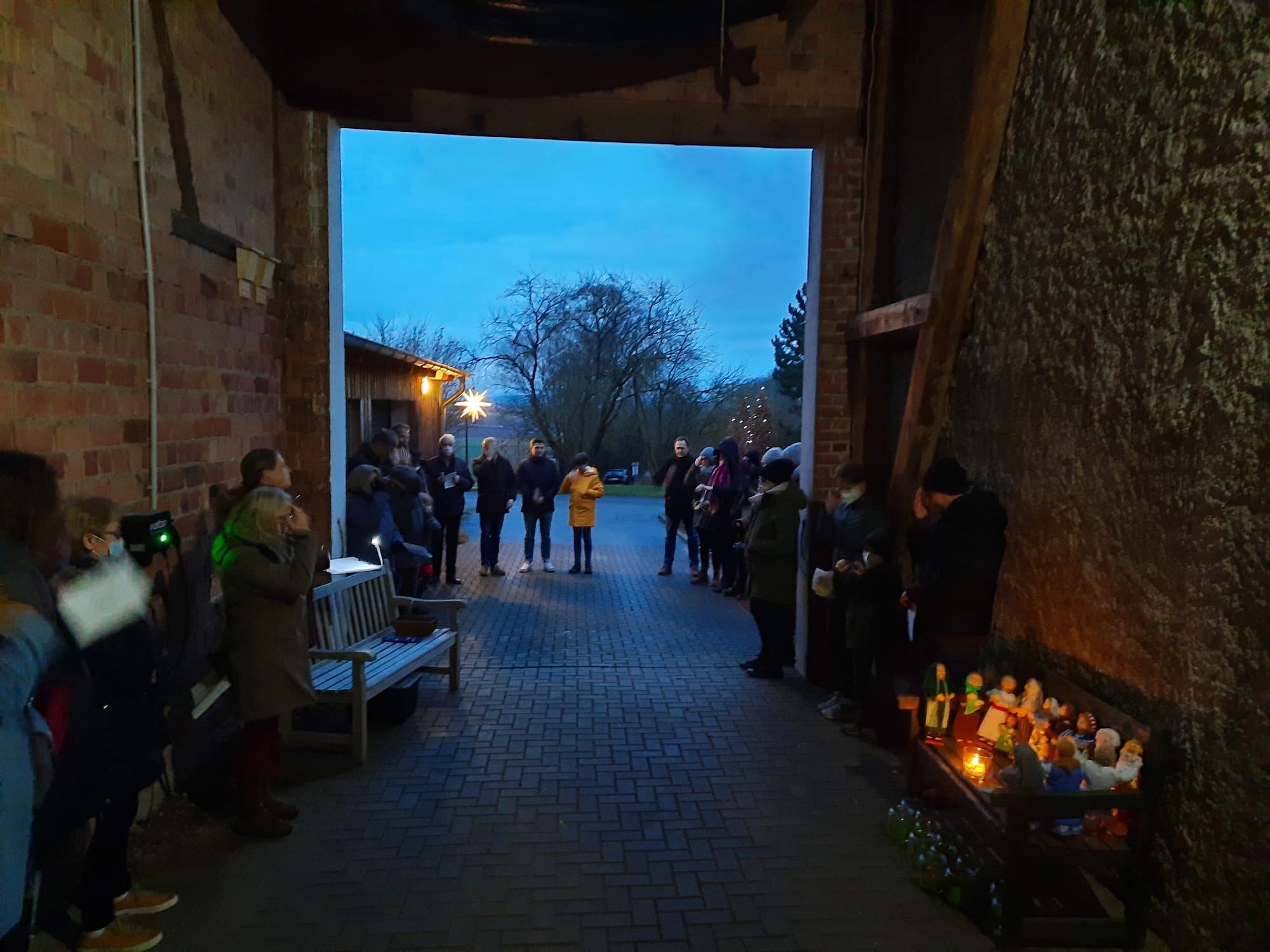Am Heiligabend sind Familien aus der Umgebung der Einladung gefolgt, die Krippe gemeinsam an ein Fenster im Landhaus am Heinberg zu stellen. Die Krippenandacht startete draußen vor dem Landhaus.