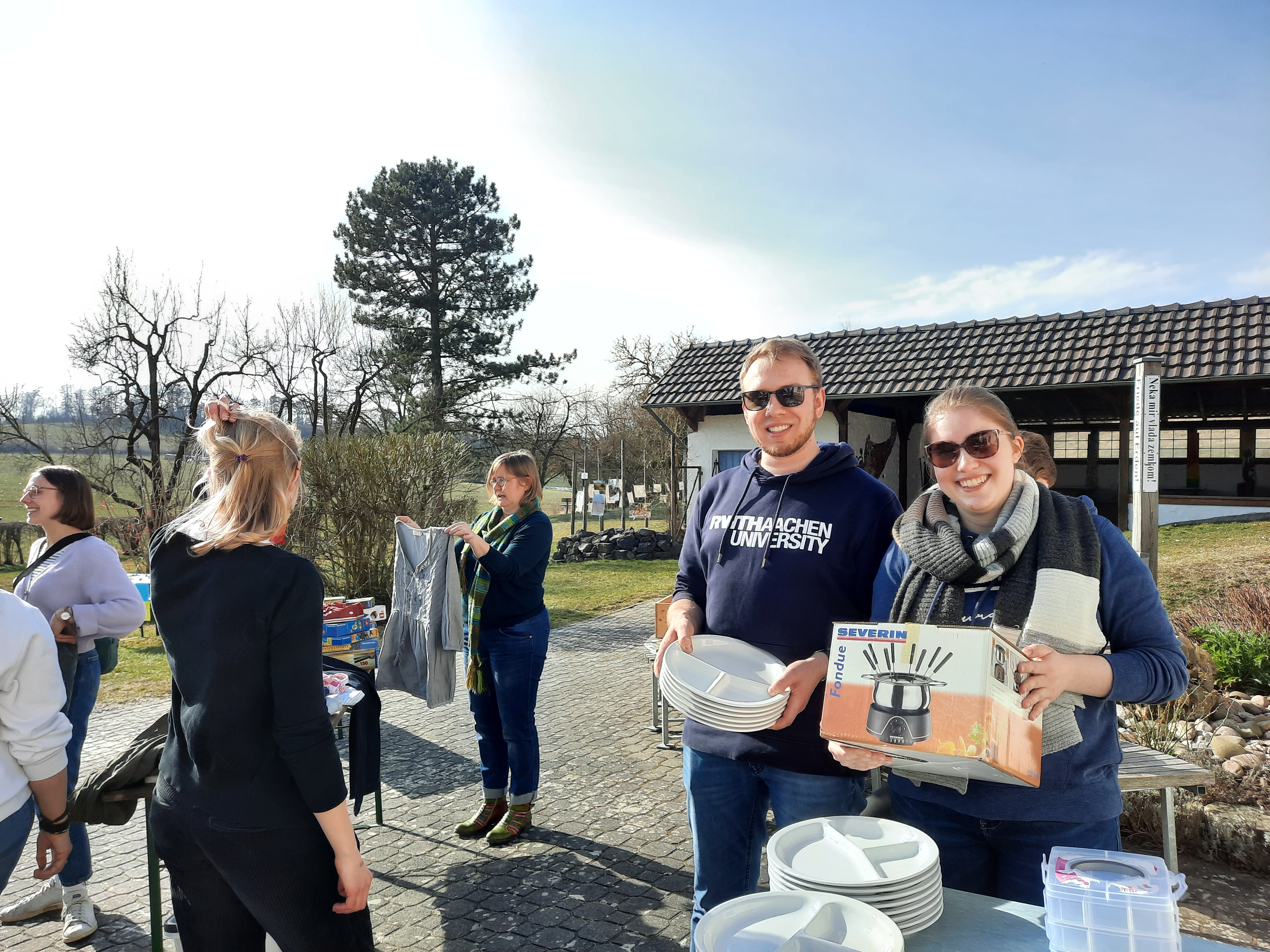 Janina Sander freut sich über ihr Fundstück bei der Umsonstbörse und sagt schmunzelnd: „Das Fondue bekommt bei uns ein neues Zuhause und das Thema Nachhaltigkeit rücken wir dann in die Mitte von unserem Eßtisch, wenn wir da gemütlich mit Freunden zusammensitzen.“