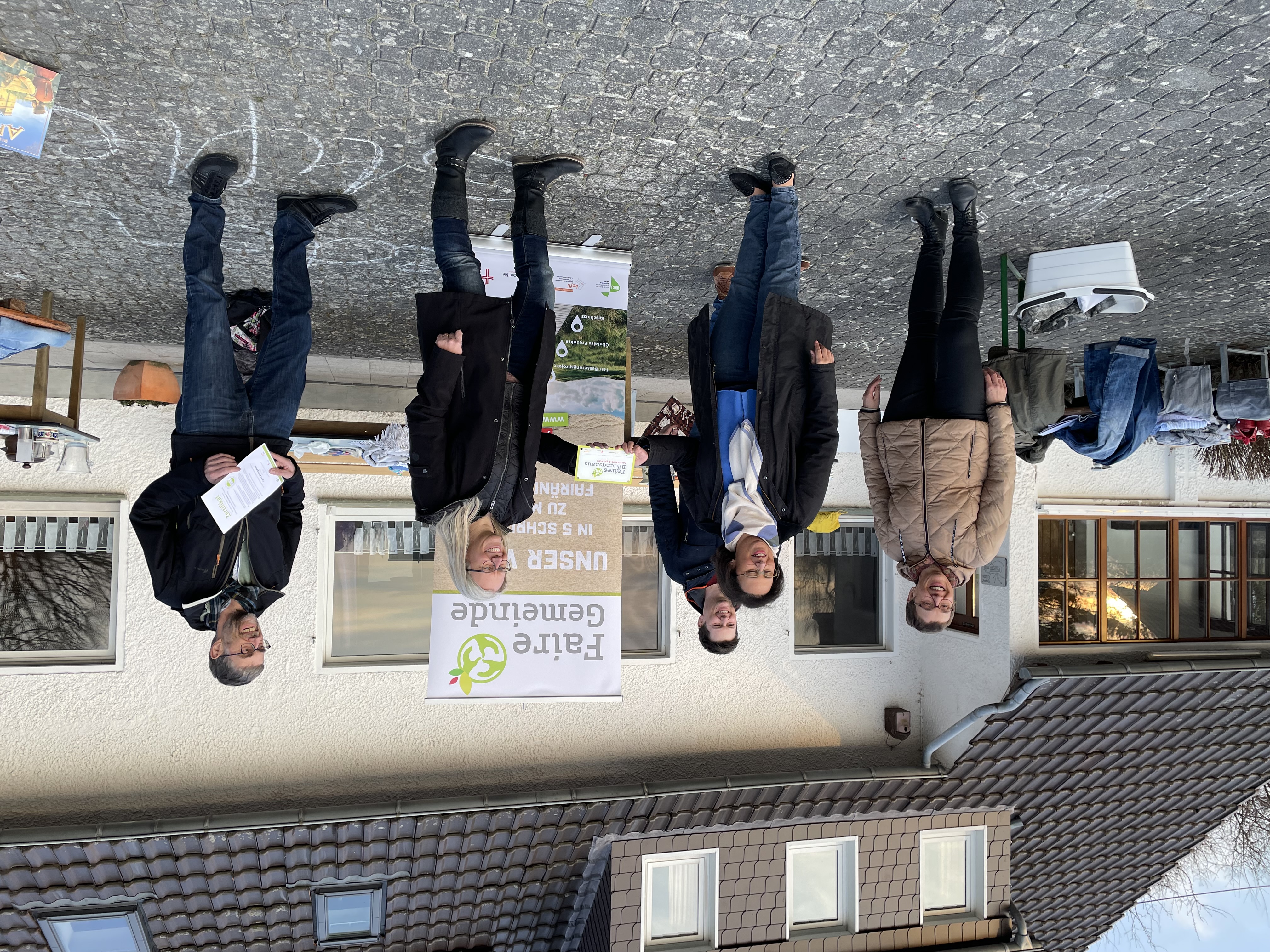 Ein besonderer Farbklecks an diesem Tag war sicherlich der erheiternde Auftritt von Hettwich vom Himmelsberg alias Anja Geueke. Sie hat eine wunderbare Brücke geschlagen von der Vereinssitzung am Vormittag hin zur offiziellen (Re)Zertifizierung zum fairen Bildungshaus. Die Plakette bekam der Verein überreicht von Nadine Mersch und Christian Föller vom Diözesankomitee des Erzbistums Paderborn. Und Stephan Lange betont in diesem Zusammenhang: „Der Gedanke der Nachhaltigkeit bewegt uns hier am Landhaus schon seit vielen Jahren. Deshalb freut es uns, dass wir mit der Rezertifizierung zum fairen Bildungshaus unser Engagement sichtbar machen können.“ Vereinsmitglieder und Menschen aus dem Warburger Raum und darüber hinaus haben die zwei Bildungsveranstaltungen der letzten Wochen besucht. „Nachhaltig bauen und renovieren“ mit Josef Fuhrmann und „nachhaltig konsumieren“ mit Jutta Baumhecker. Die Rückmeldung der Teilnehmenden hat klar gemacht: das Landhaus wird weiterhin Menschen aus der Region einladen, um sich zu nachhaltigen Themen auszutauschen.