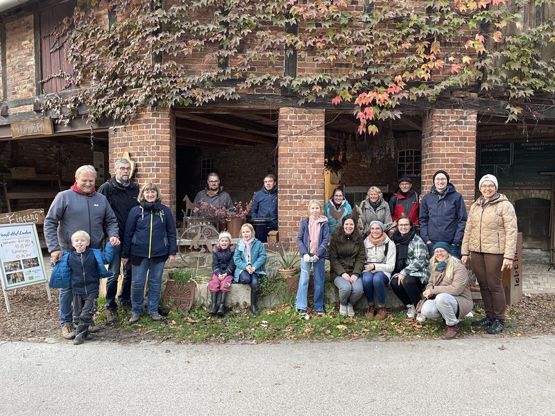 Nach einem gemeinsamen Frühstück am Samstagmorgen starteten wir gut gestärkt in den Tag. Die Morgenrunde im Meditationsraum zum Thema „Schöpfung achten“ stimmte uns auf den Tag und den bevorstehenden Ausflug zum Vauß-Hof in Scharmede ein. Ein wiederkehrendes Thema am Wochenende war darüber hinaus, möglichst nachhaltig mit Ressourcen umzugehen und auch unsere Gäste immer wieder daran zu erinnern.
